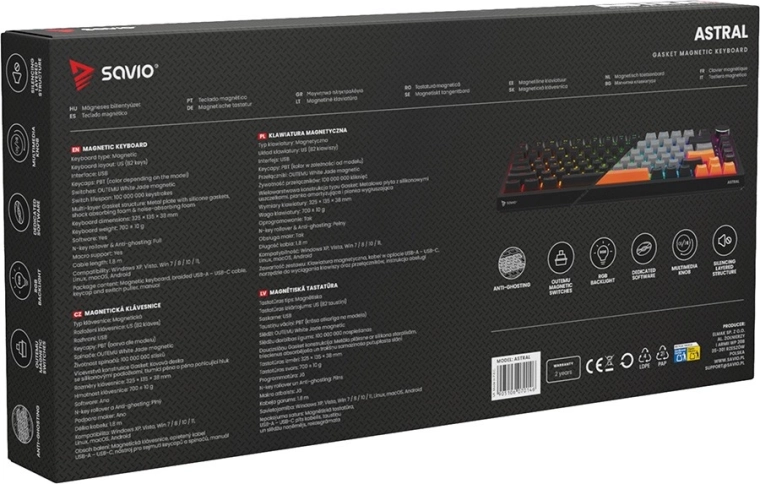 The Astral keyboard changes the rules: instead of traditional contacts it uses magnetic sensing (Hall effect), making each press faster, smoother, and more precise. The Gasket Mount construction with a metal plate, silicone gaskets, and foam layers dampens unwanted resonance and noise, for comfortable, refined typing and gaming.