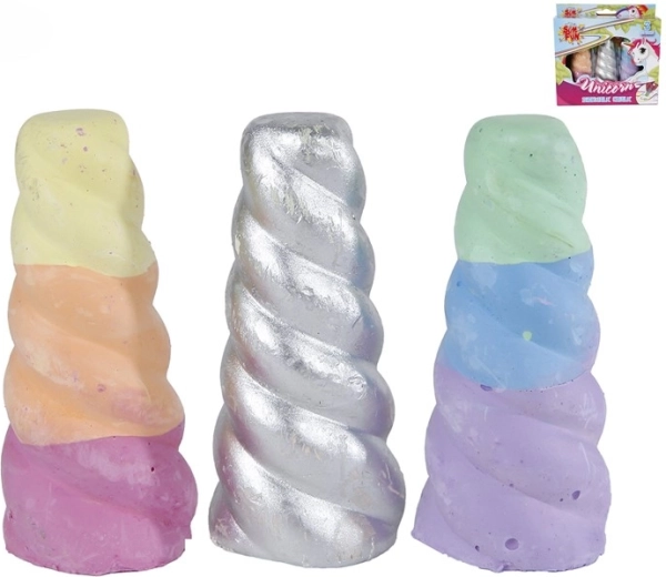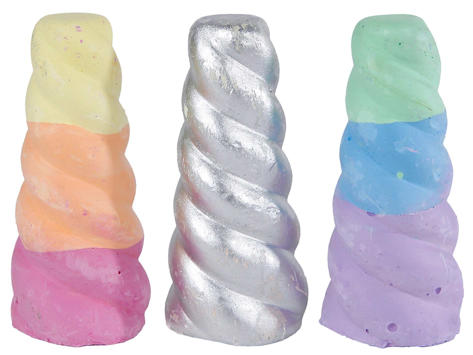Spark children’s imagination with this set of colorful chalk shaped like a unicorn horn. Each piece measures 8 cm for comfortable grip and easy drawing on sidewalks or chalkboards. Cheerful colors encourage creativity, the ergonomic shape suits smaller hands, and the practical box ensures easy carrying and storage. Suitable for children aged 3 and up.