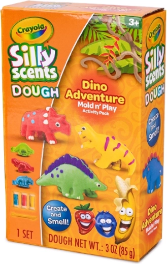 Discover a fun set for little creators: Crayola Scented Modeling Compound includes 3 scented modeling clays of 28 g each in bright colors and dinosaur-themed cutters. Ideal for developing creativity, fine motor skills, and sensory perception for children aged 3 and up. A practical box makes storage and transport easy.