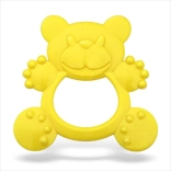 Yellow silicone teether with a ring is easy to hold and ideal for gentle chewing and play.