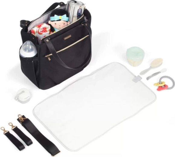 The sturdy, durable fabric with a smooth surface is easy to clean and stands up to daily use and changing weather conditions. Comfortable handles, a detachable shoulder strap, and side straps for stroller attachment offer maximum carrying flexibility. A practical changing mat is also included for convenient on-the-go care.