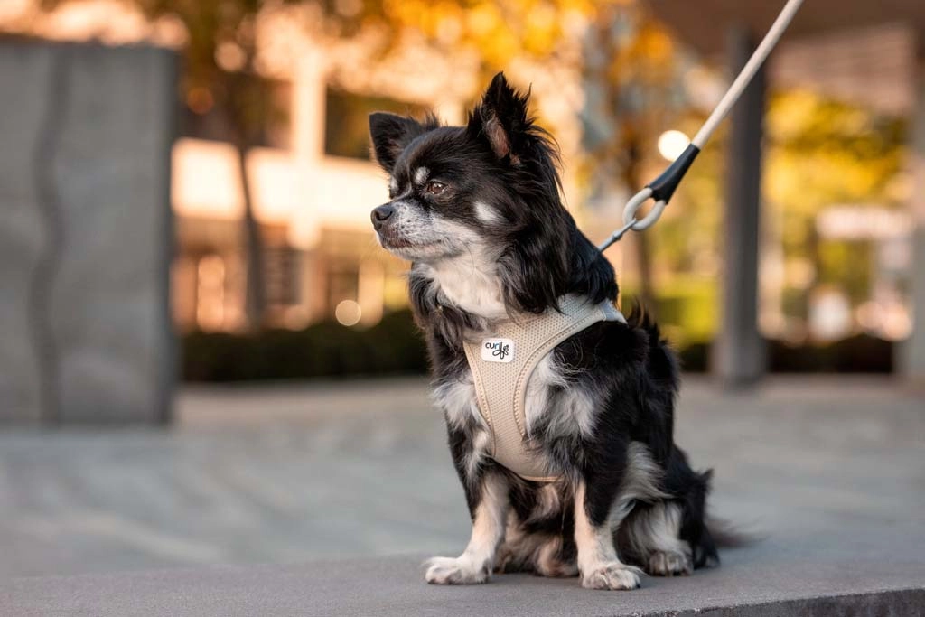 The lightweight and comfortable CURRI Air-Mesh harness with an innovative buckle for small dogs weighing 3–5 kg ensures secure control without pressure on the neck. It offers one-handed quick fastening, reflective elements for visibility, optimal force distribution, and a breathable, cooling material for everyday walking comfort.
