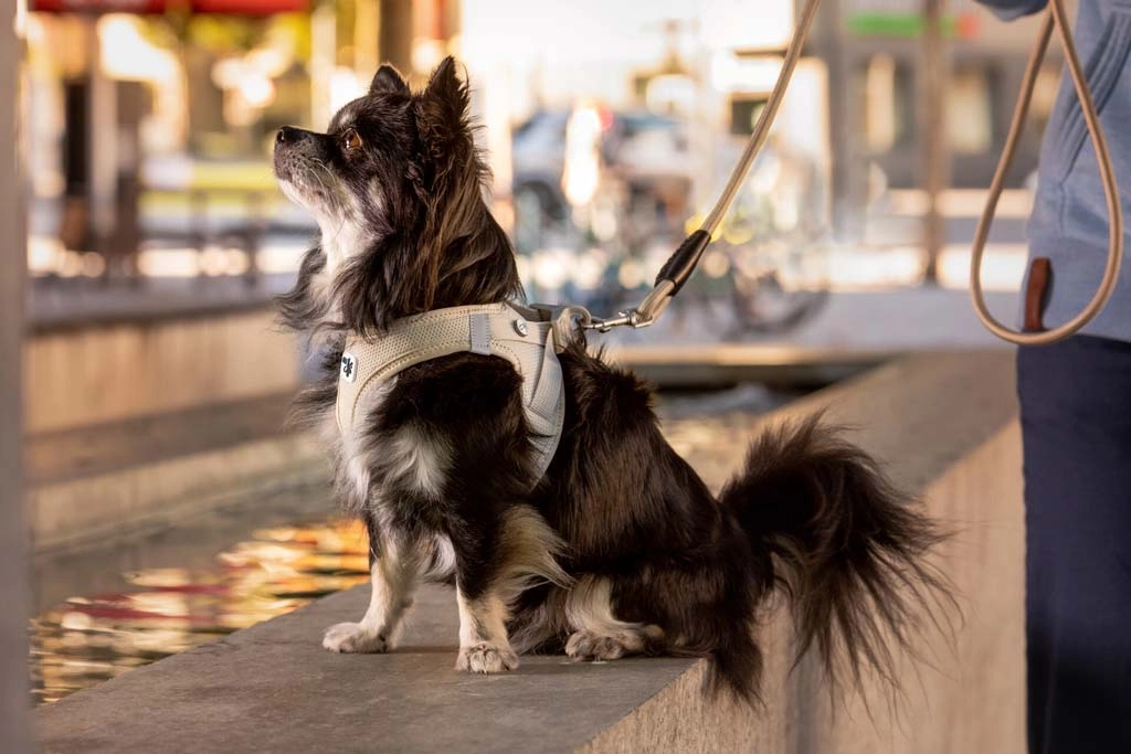 The practical quick-release buckle lets you attach the leash with one hand without the “clicking” of metal rings. For evening walks, reflective details improve visibility. In summer, simply soak the harness in cold water for a long-lasting cooling effect. Registering the DogFinder ID provides free support if your dog goes missing.