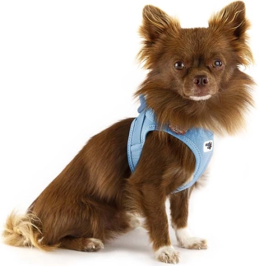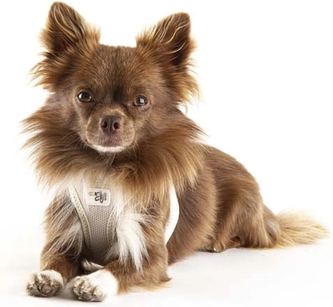 Lightweight and comfortable dog harness made of Air‑Mesh for small dogs 3–5 kg. Thanks to the quick buckle you can attach the leash and harness with one hand, the ergonomic cut distributes pressure away from the neck, and reflective elements enhance safety. The adjustable hook-and-loop closure ensures a precise fit and the breathable mesh, when soaked, can provide a cooling effect in hot weather.