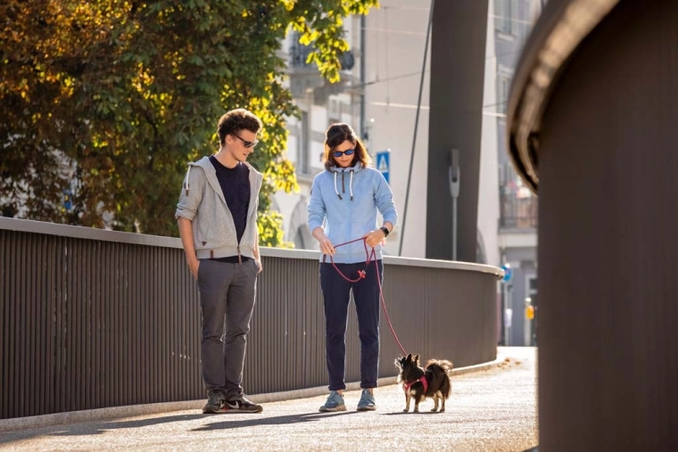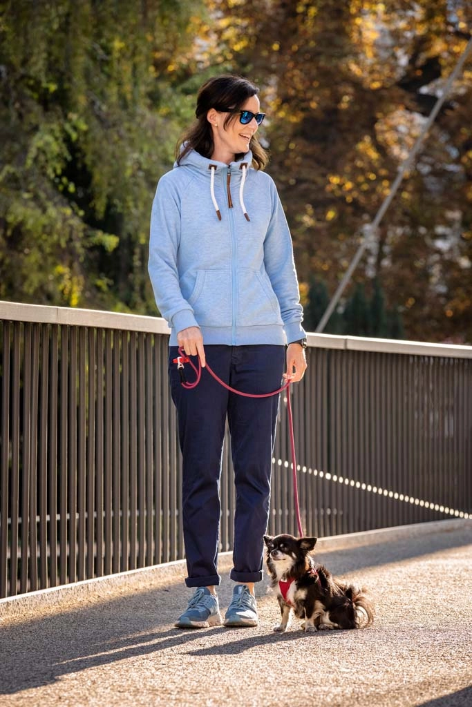 The intuitive step‑in design makes it easy to put on and take off. A padded buckle protects fur from pinching, durable materials withstand up to 100 kg of pull, and reflective elements increase visibility at dusk. In summer, simply wet the harness with cold water for pleasant cooling. Also includes DogFinder ID for online registration to help in case your dog goes missing.