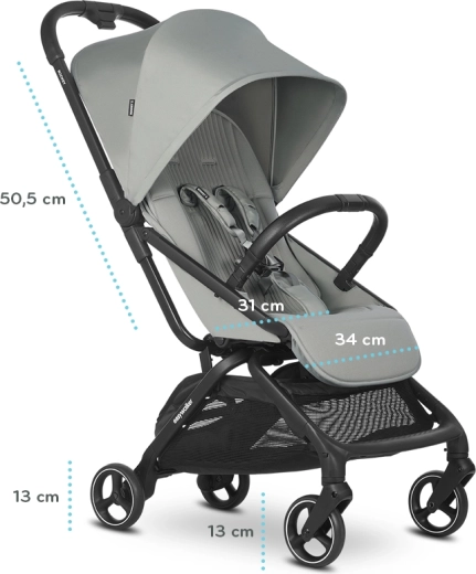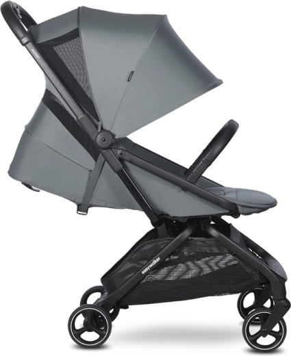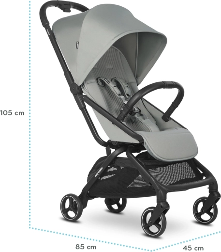 Travel light with the Easywalker Rockey S in Smooth Grey – an ultra-light and super-compact companion for the city and on the go. It offers one-click automatic folding, a fully reclining seat, capacity up to 22 kg, and an extendable canopy with ventilation. Compatibility with car seats and carrycot makes it a from-birth solution, and it’s ideal as an airline cabin bag.
