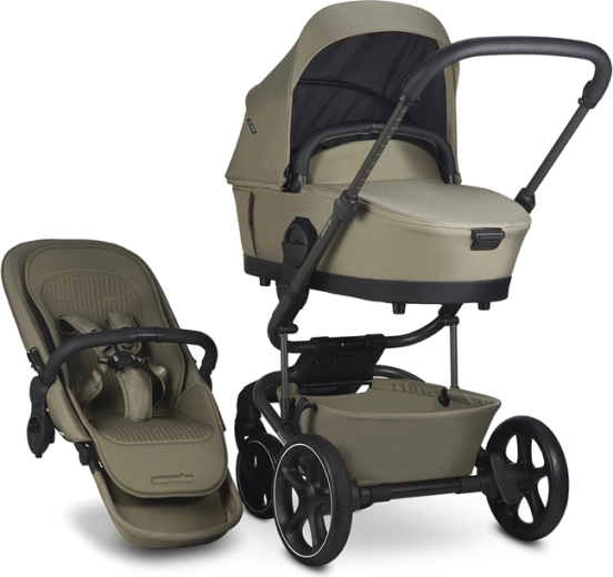 The modern Easywalker Harvey NXT Set XL stroller in Moss Green combines the smoothest ride, compact folding, and maximum comfort for both child and parent. It offers a reversible seat unit with 3 positions, a spacious carrycot from birth with organic cotton, a UPF 50+ canopy, and a large 10 kg basket. Thanks to high-quality wheels and the option to expand to a duo, it handles both city streets and rougher terrain.