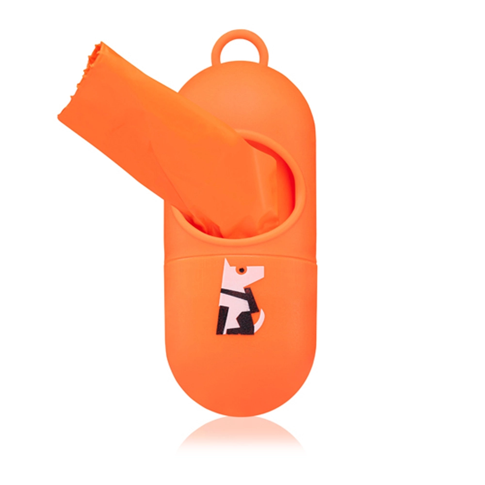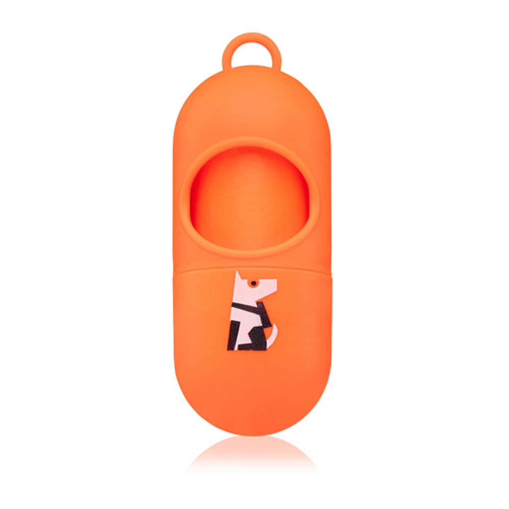 A practical and durable dog waste bag dispenser with 1 roll (15 pcs) in a bright orange color for easy spotting on walks. Thanks to the adjustable hook-and-loop strap, you can attach it to any leash or backpack. The bags are 100% strong, 100% leak-proof, and generously sized (22 × 33 cm). The eco-friendly oxo-biodegradable design helps them decompose faster than regular bags.
