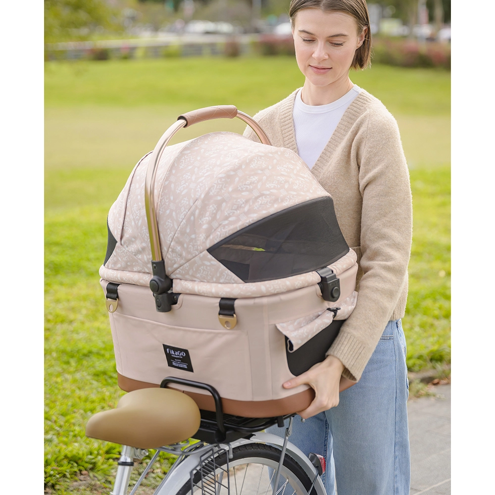 The Fikago Flytta bike link is a universal carrier designed for easy everyday use. Its aluminum chassis guarantees low weight, stability, and long service life. The carrier can be quickly detached and used either on a bike or attached to the chassis for convenient movement in stroller mode.