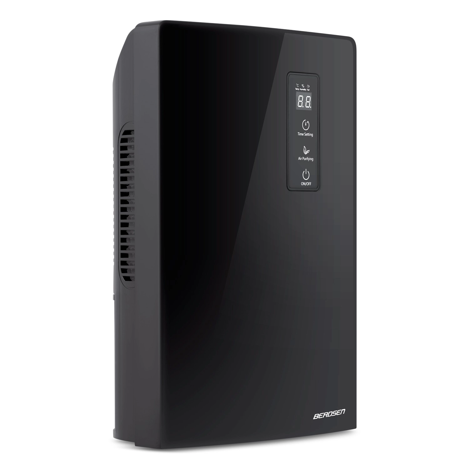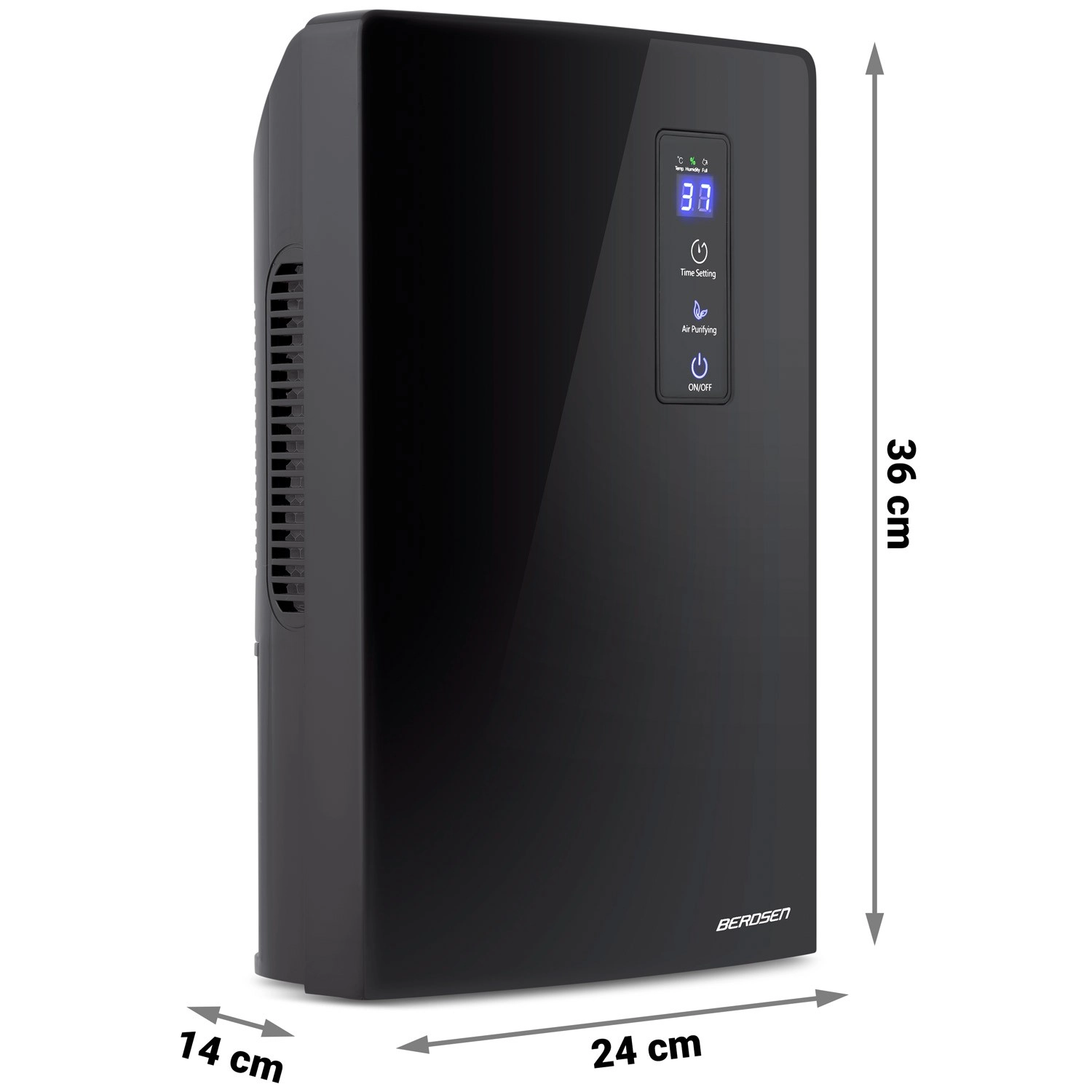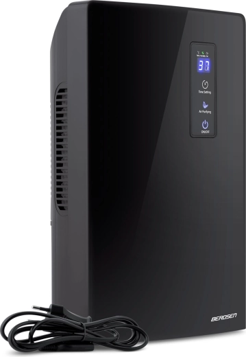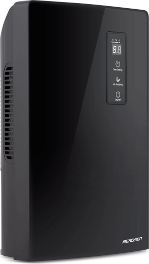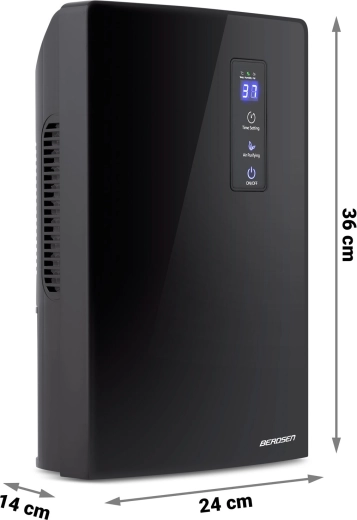 The compact Berdsen BR-20 air dehumidifier with Peltier technology effectively reduces humidity while also offering an air cleaning function with UV. Thanks to its quiet operation, energy efficiency, and touch LED display, it is ideal for apartments and smaller rooms. It features a 2 L tank, a 1–24 h timer, and automatic shut-off when the tank is full.