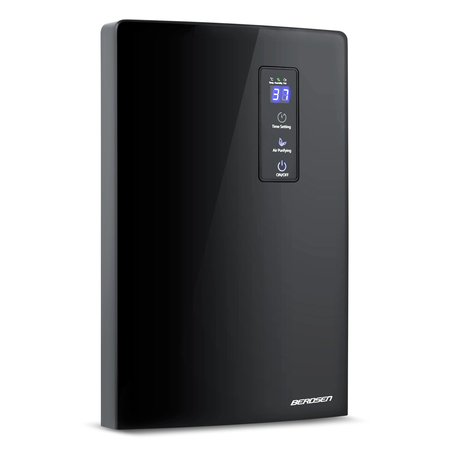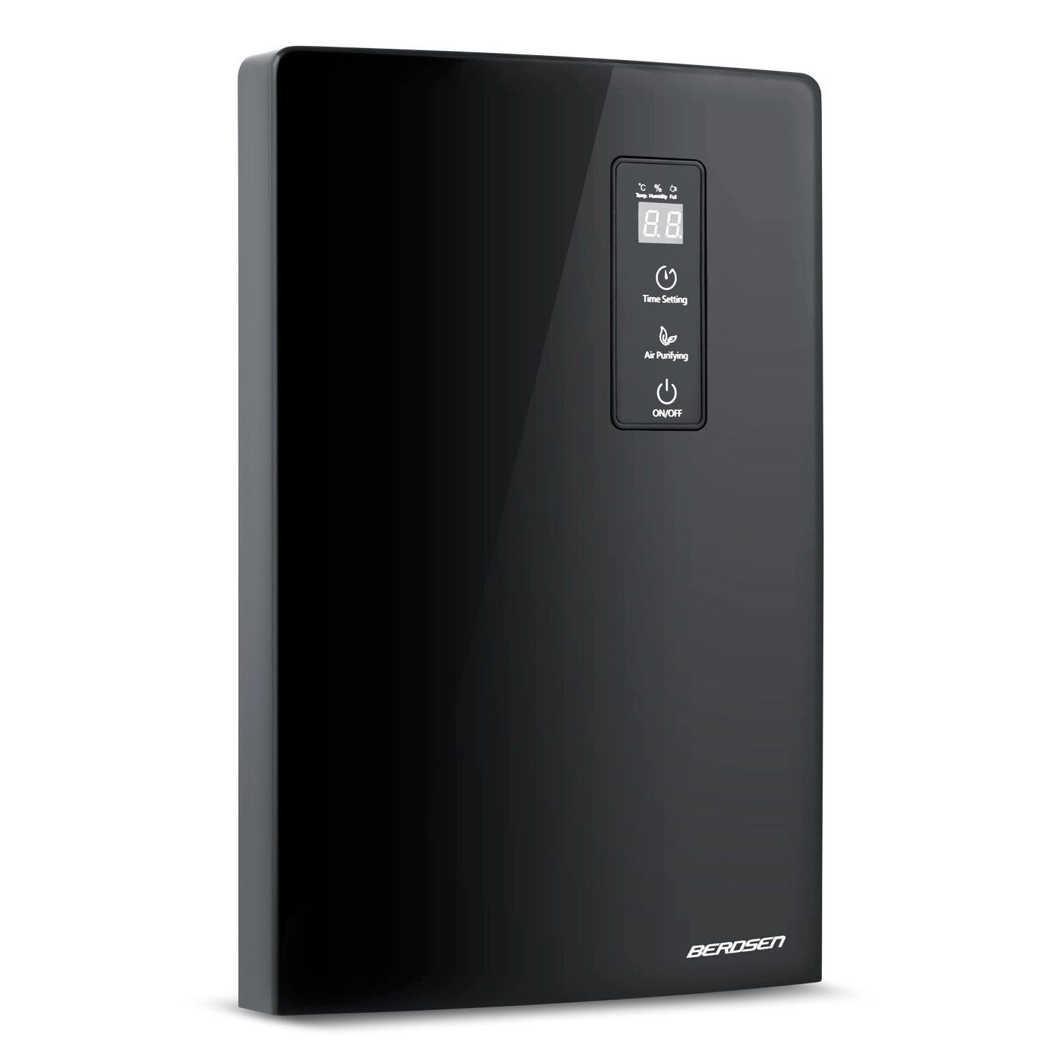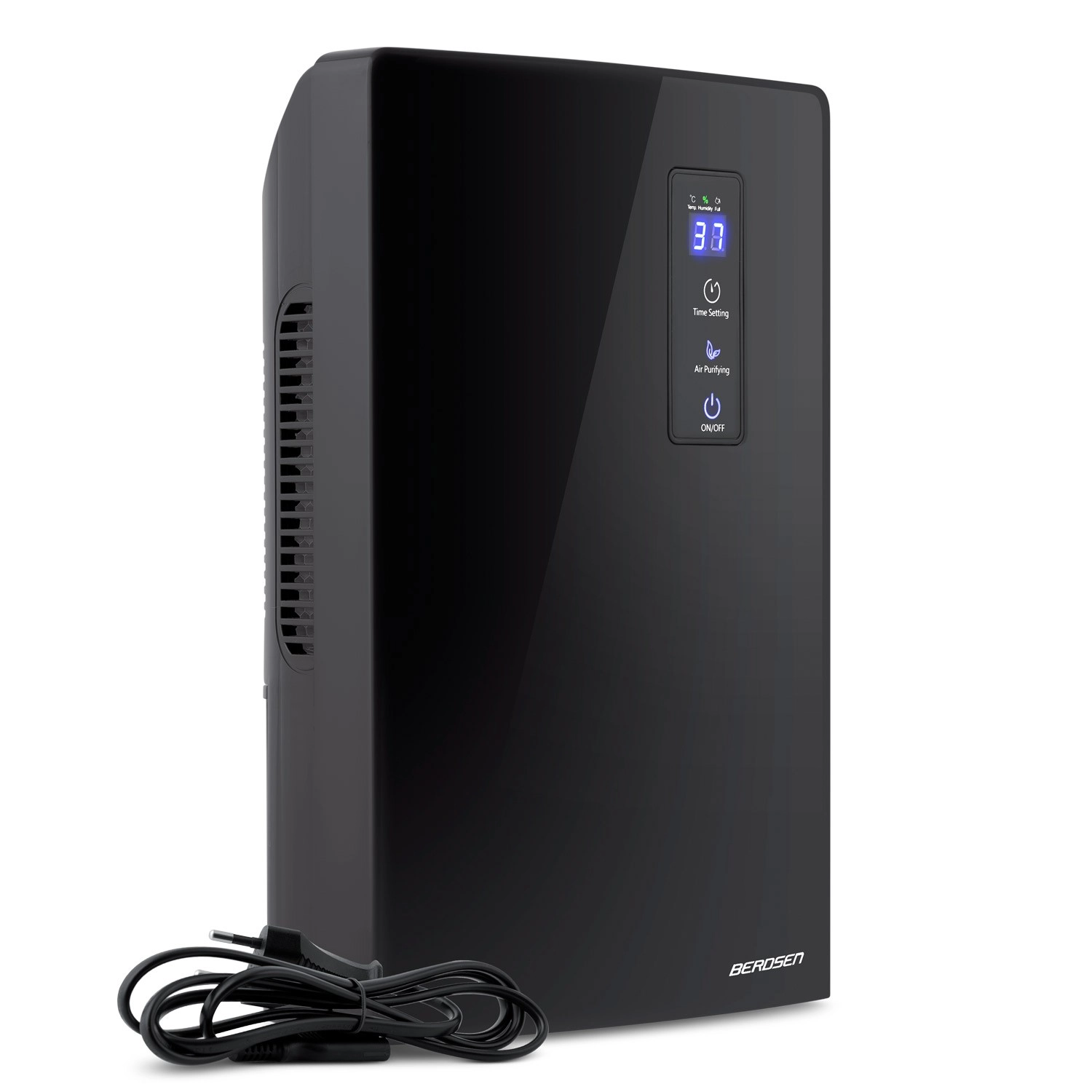 The compact Berdsen BR-20 air dehumidifier with Peltier technology effectively reduces humidity while also offering an air cleaning function with UV. Thanks to its quiet operation, energy efficiency, and touch LED display, it is ideal for apartments and smaller rooms. It features a 2 L tank, a 1–24 h timer, and automatic shut-off when the tank is full.