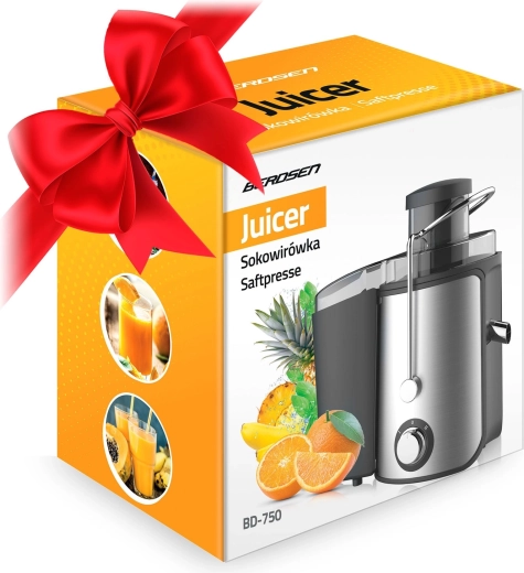 The BERDSEN BD-750 is a reliable, fast centrifugal juicer for everyday fresh drinks. With a two-position control, you can easily choose the optimal speed for both soft and hard produce. The wide 65 mm feed chute saves prep time, and stainless/BPA-free materials ensure safe food contact.