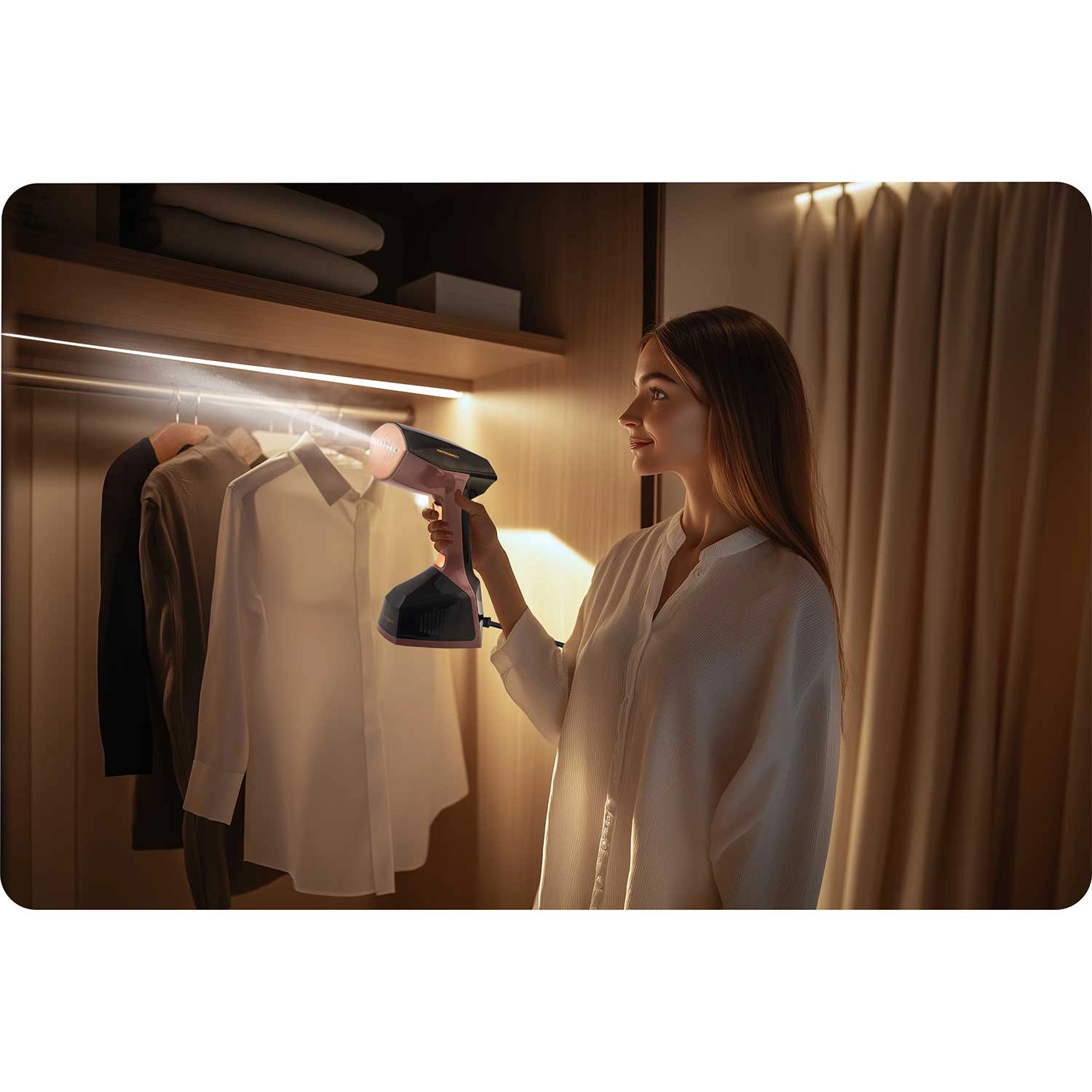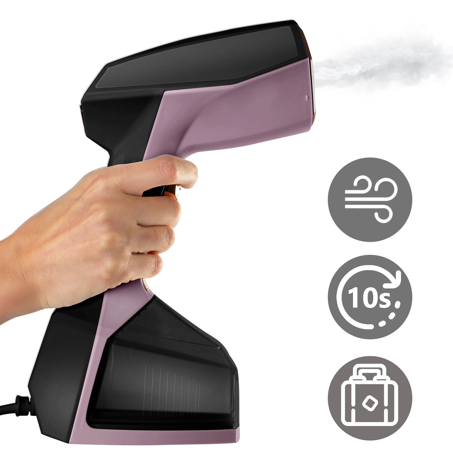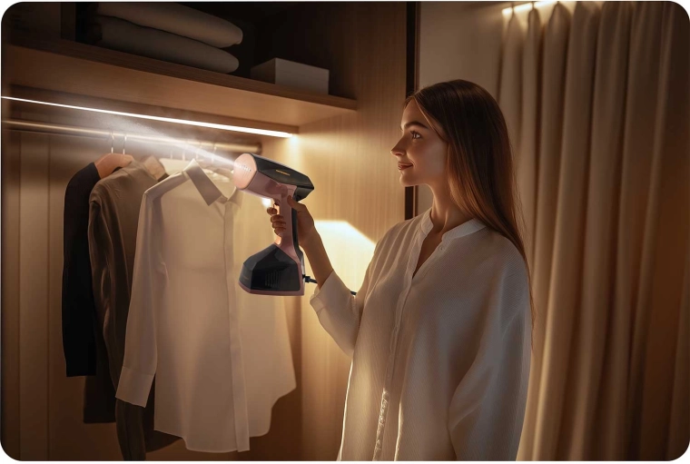 - Quickly refresh garments – instantly smooth shirts, dresses, and blazers right on the hanger.