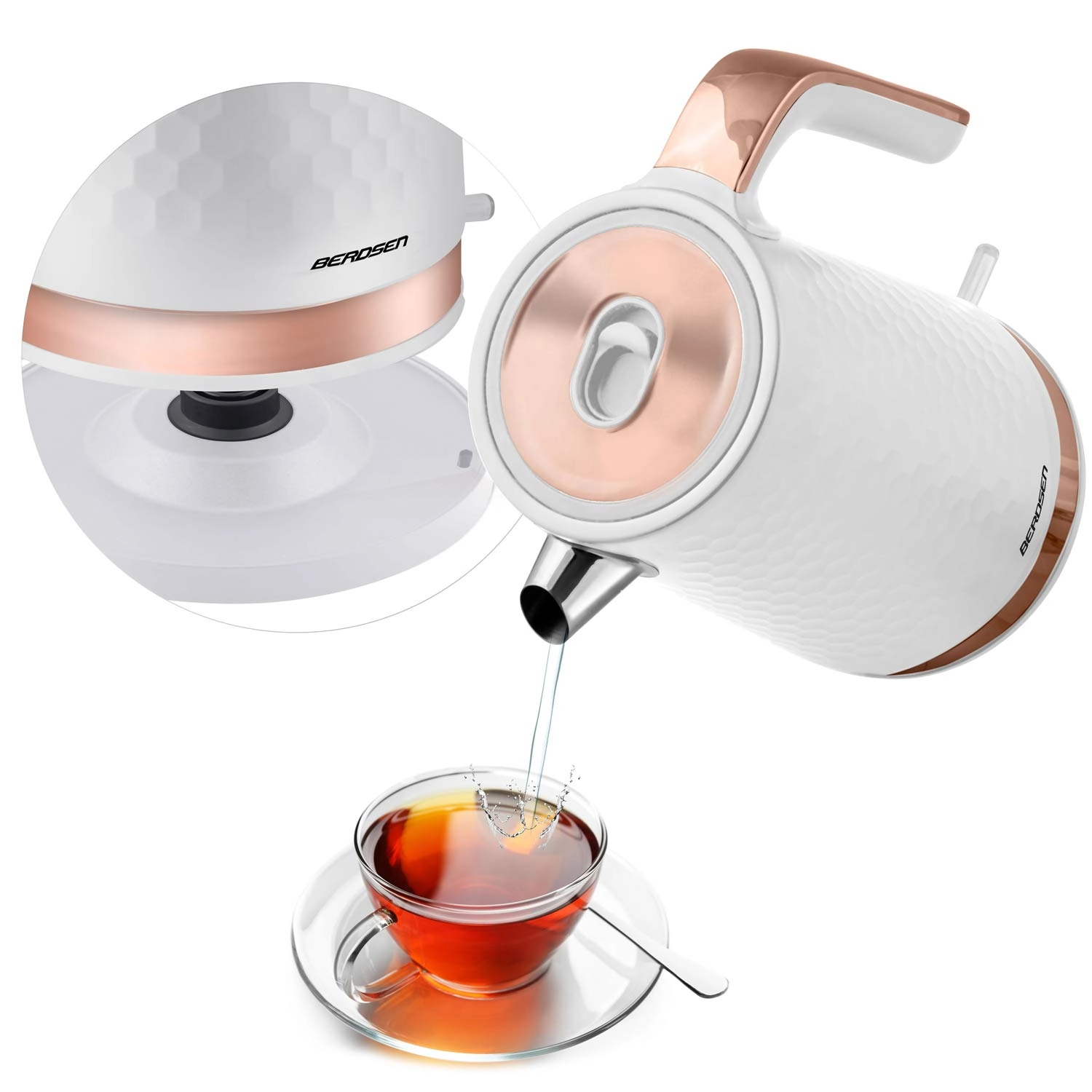 Electric Kettle 1.7 L BERDSEN matte white with copper details