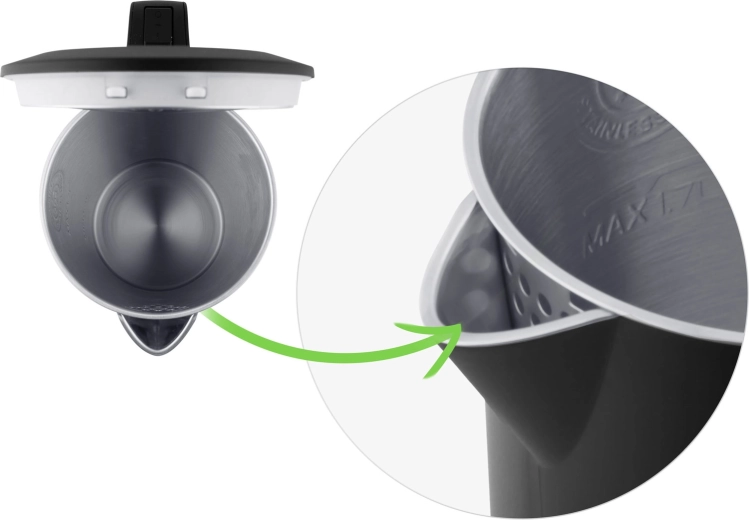 The kettle is designed for convenience: a 3606 rotating base for both right- and left-handed users, a removable filter for a clean pour, and automatic boil-dry protection for maximum safety. Elegant LED lighting clearly indicates operation, and the cable can be neatly stored in the integrated compartment.