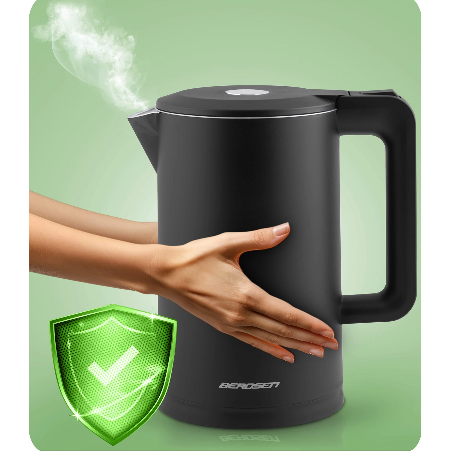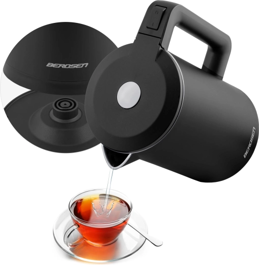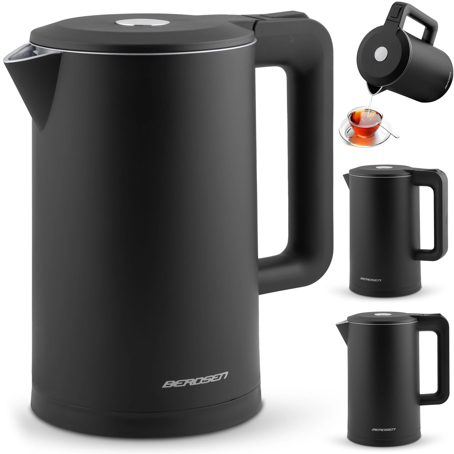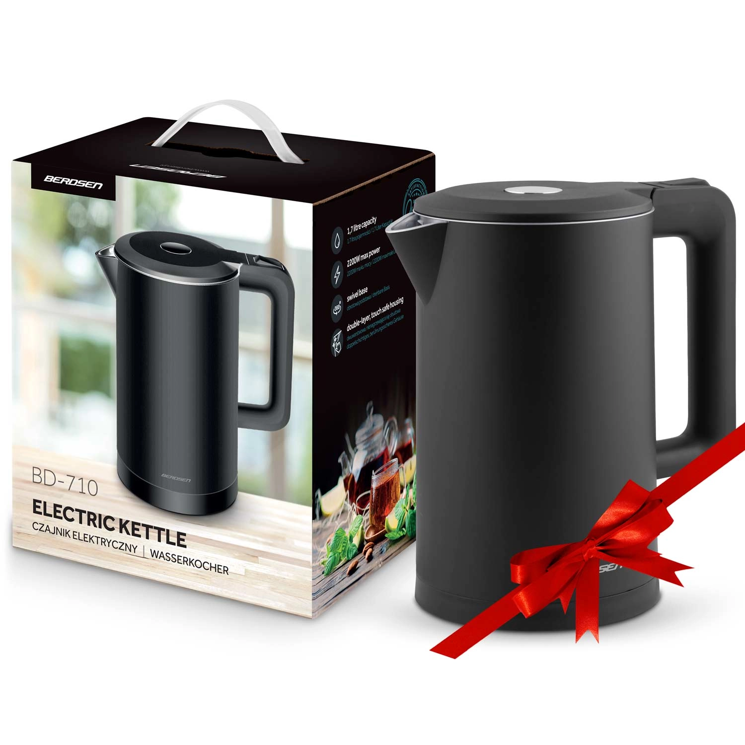 The stylish BERDSEN electric kettle with a 1.7 L capacity combines SUS304 stainless steel for pure water taste and an insulated CoolTouch2 construction for safe, burn-free use. It offers 18503220 W power for fast boiling, a 3606 rotating base, a LED backlit strip, and thoughtful details like a cord compartment and non-slip feet.