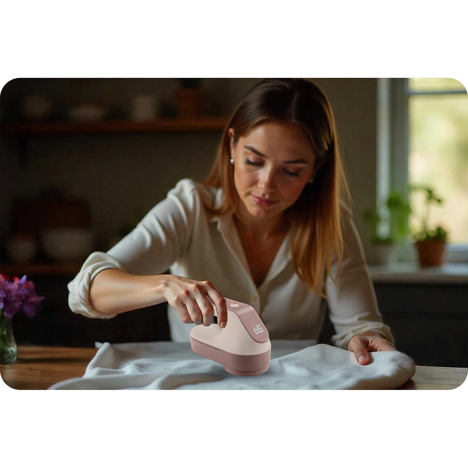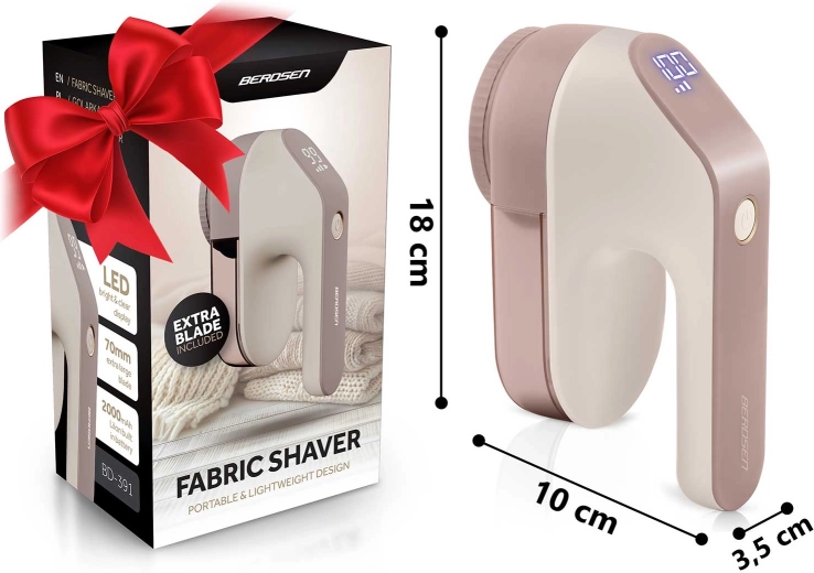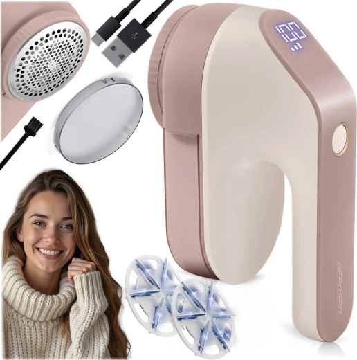 Keep your clothes looking like new with the modern Berdsen lint remover featuring an LCD display, 3 power levels, and a powerful 2000 mAh battery. Efficiently removes pills, fuzz, and pulled fibers from sweaters, coats, and home textiles. Stainless steel blades and a protective head ensure safe use on various materials, while the battery level indicator gives you full control over operation.