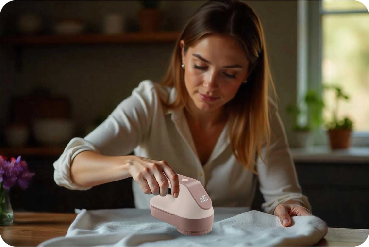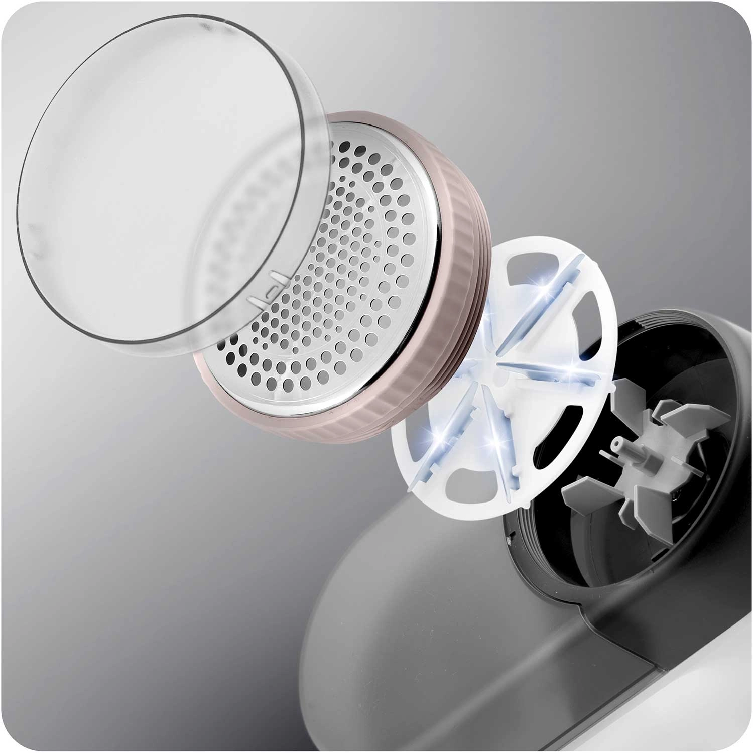 Sharp stainless steel blades efficiently remove pills, fuzz, and pulled fibers, restoring a smooth, neat look to textiles with ease.