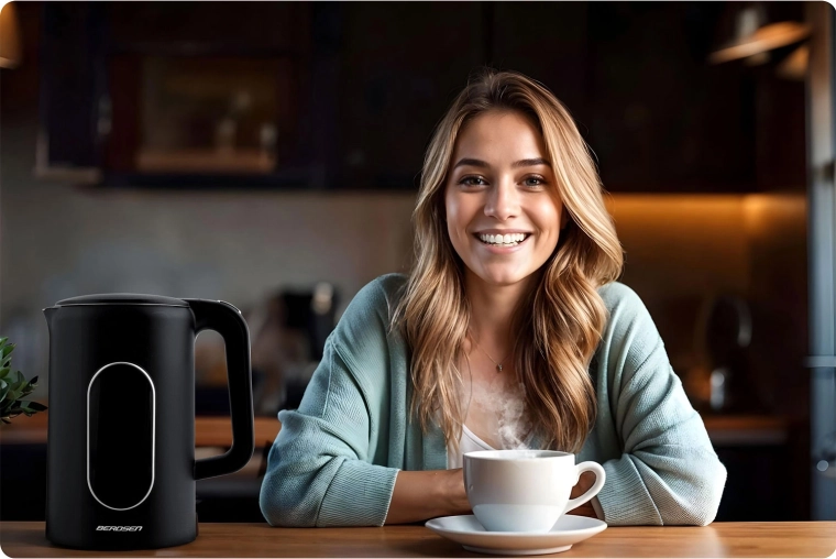 Boils water in 2–5 minutes. Quiet operation, auto shut-off after boiling, and boil-dry protection for safe use.