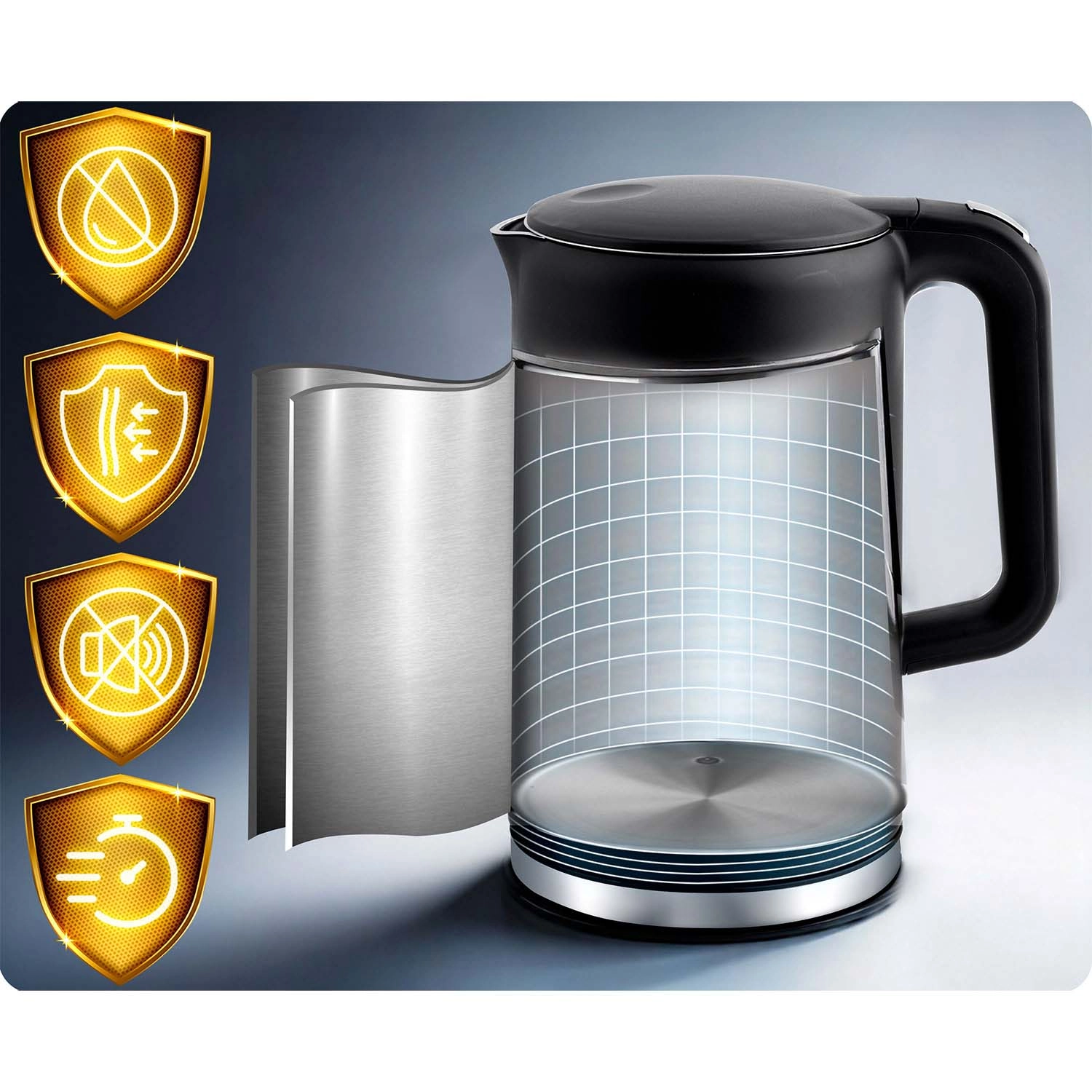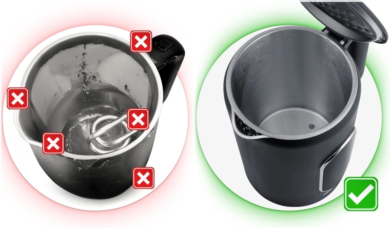 Safe and durable build: the double-wall CoolTouch body combines stainless steel and high-quality plastic for better insulation, a cool exterior, and reduced heat loss. The SUS 304 stainless-steel interior is hygienic, easy to clean, and does not affect the taste of water. The kettle is fast and quiet (up to 2200 W), with boil-dry protection and automatic shut-off after boiling.
