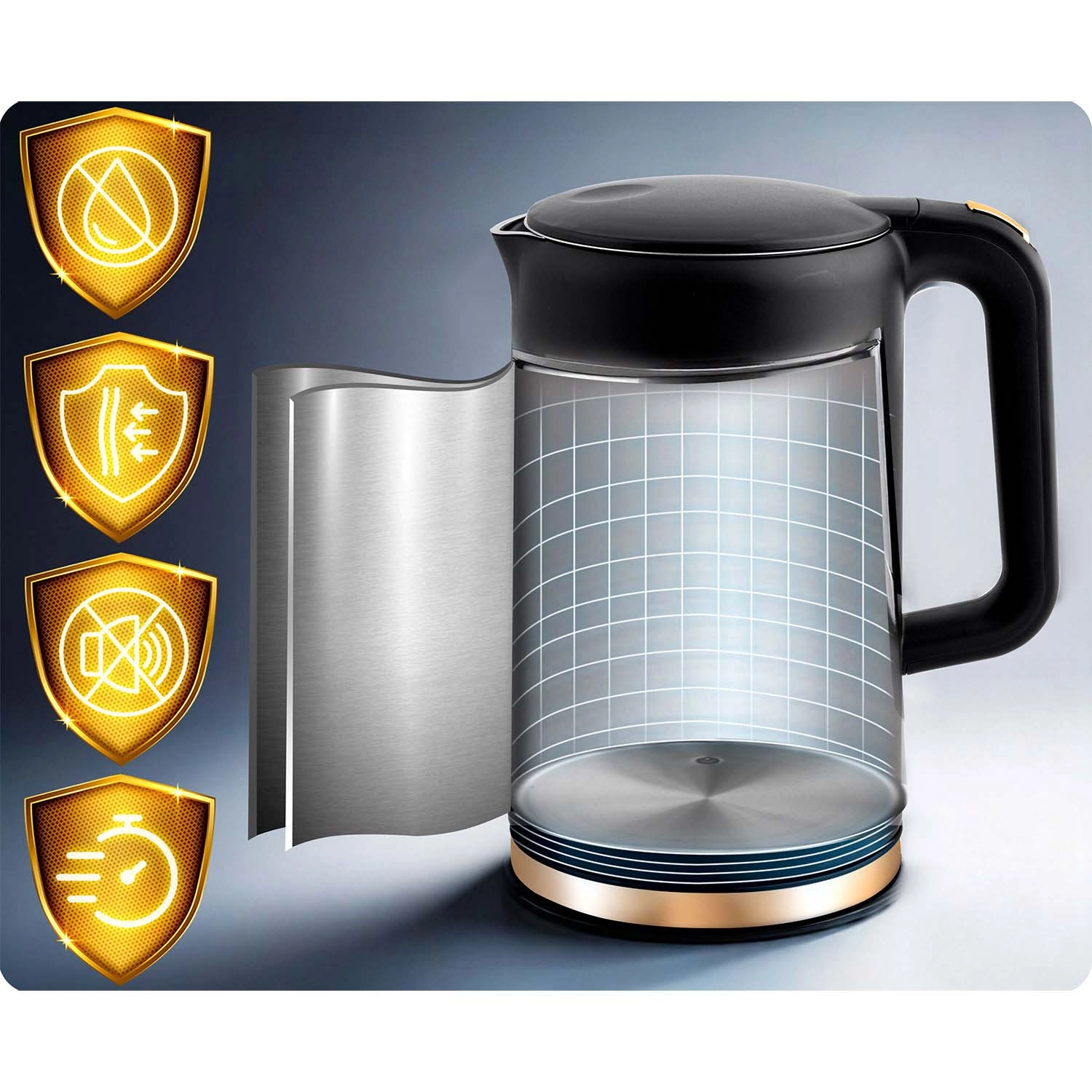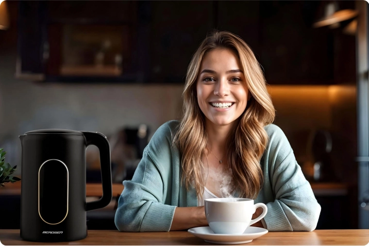 Safety and comfort are ensured by the double‑layer CoolTouch™ construction (stainless steel + high‑quality plastic), which stays cool to the touch, plus reliable auto shut‑off with boil‑dry protection. The SUS 304 stainless interior is durable, hygienic, and BPA‑free—for cleaner water and a longer appliance lifespan.