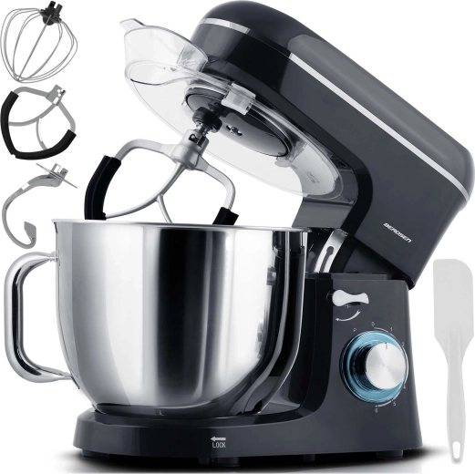 With 6 speed levels and a PULSE mode, you can easily switch between gentle stirring and vigorous whipping. The splash guard with an ingredient chute keeps your kitchen clean, non-slip feet ensure stability, and safety features protect against improper assembly and overheating.