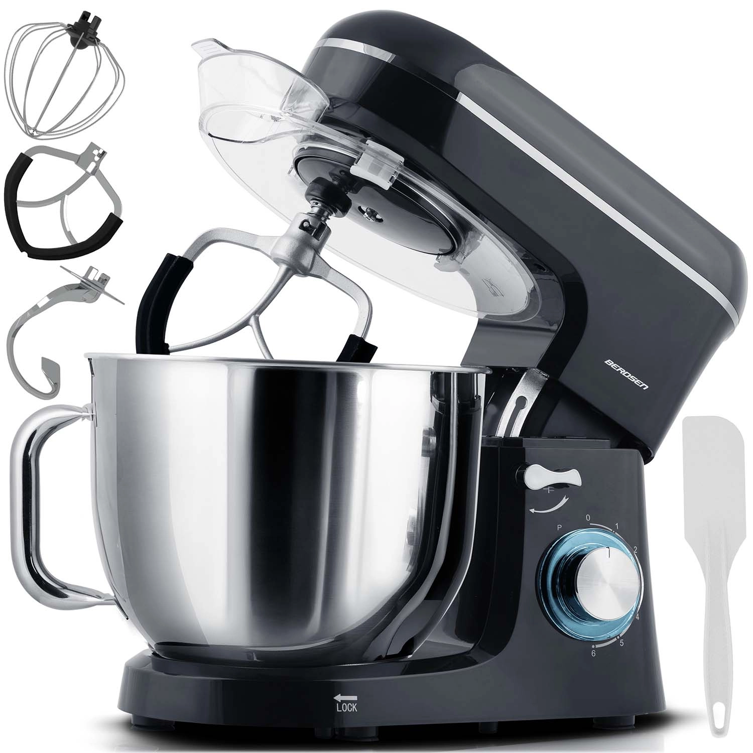 Discover the reliable Berdsen planetary mixer with a powerful 1400 W copper motor, a fully metal gearbox, and a 6 L stainless steel bowl. It offers 6 speeds + PULSE, rich accessories, and a splash guard for clean, precise mixing, kneading, and whipping.