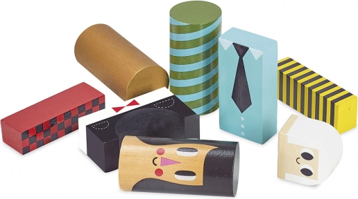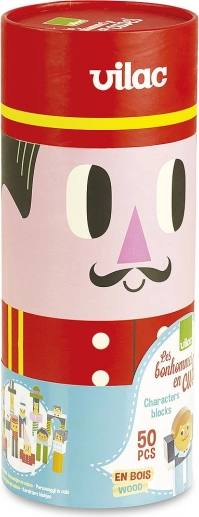 VILAC wooden blocks with illustrated human figures are a great choice for creative children aged 3 and up. Pieces shaped like heads, bodies, legs, and hats can be freely combined to create an endless number of funny and original characters. The play naturally develops creativity, hand–eye coordination, and fine motor skills.