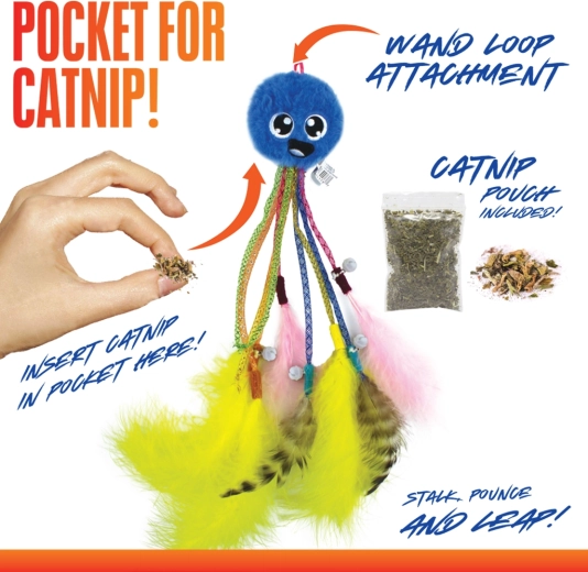 Awaken your cat’s instincts with an interactive wand toy – a plush octopus with bells. The combination of a soft “ultraplush” surface, durable nylon, and springy legs mimics prey, while the bells and high-contrast colors boost play appeal. Ideal for chasing, jumping, and agility training for cats of all kinds.