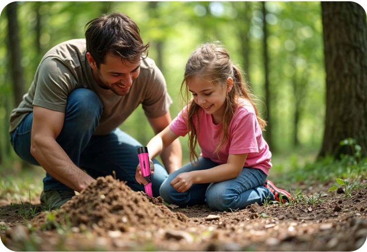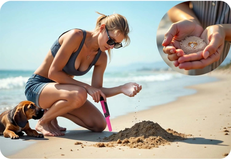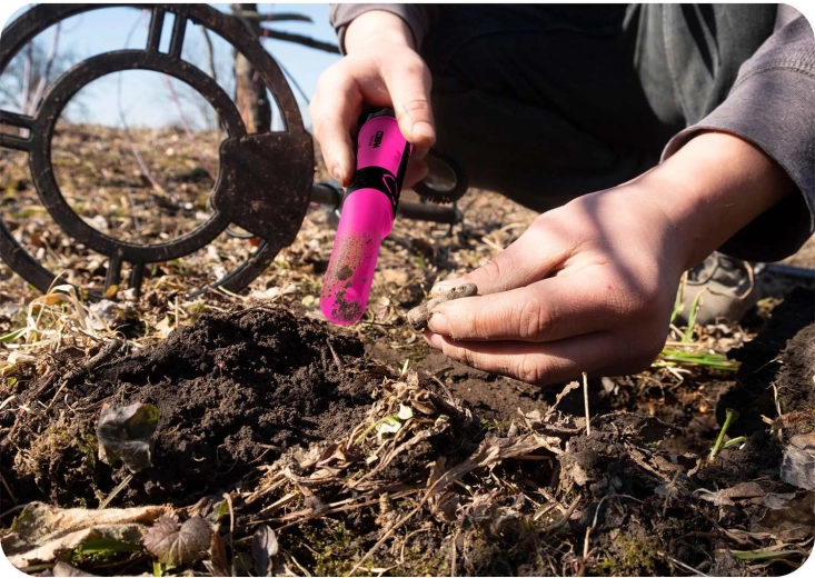 Scan all around and pinpoint the exact location of the find within seconds. Ideal for coins, jewelry, and small metal objects.