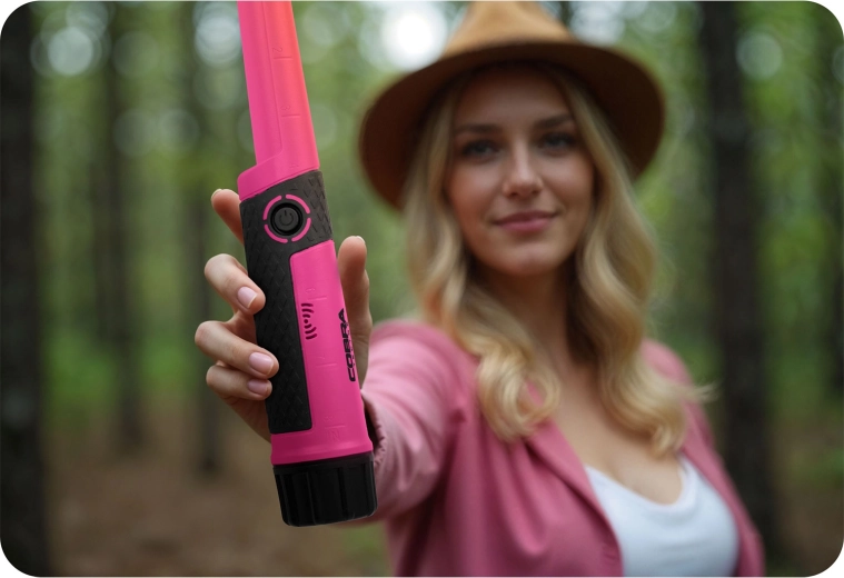 Lightweight and precise COBRA Tector CT-1079 pinpointer metal detector for quick target location in soil, sand, and water. Offers 360° scanning, 4–5 cm sensitivity, 3 alarm modes (sound, vibration, sound+vibration), an LED flashlight, and IPX8 waterproofing. With automatic tuning, last setting memory, and a non-slip handle, operation is easy and comfortable. The package also includes a holster and carabiner for free.