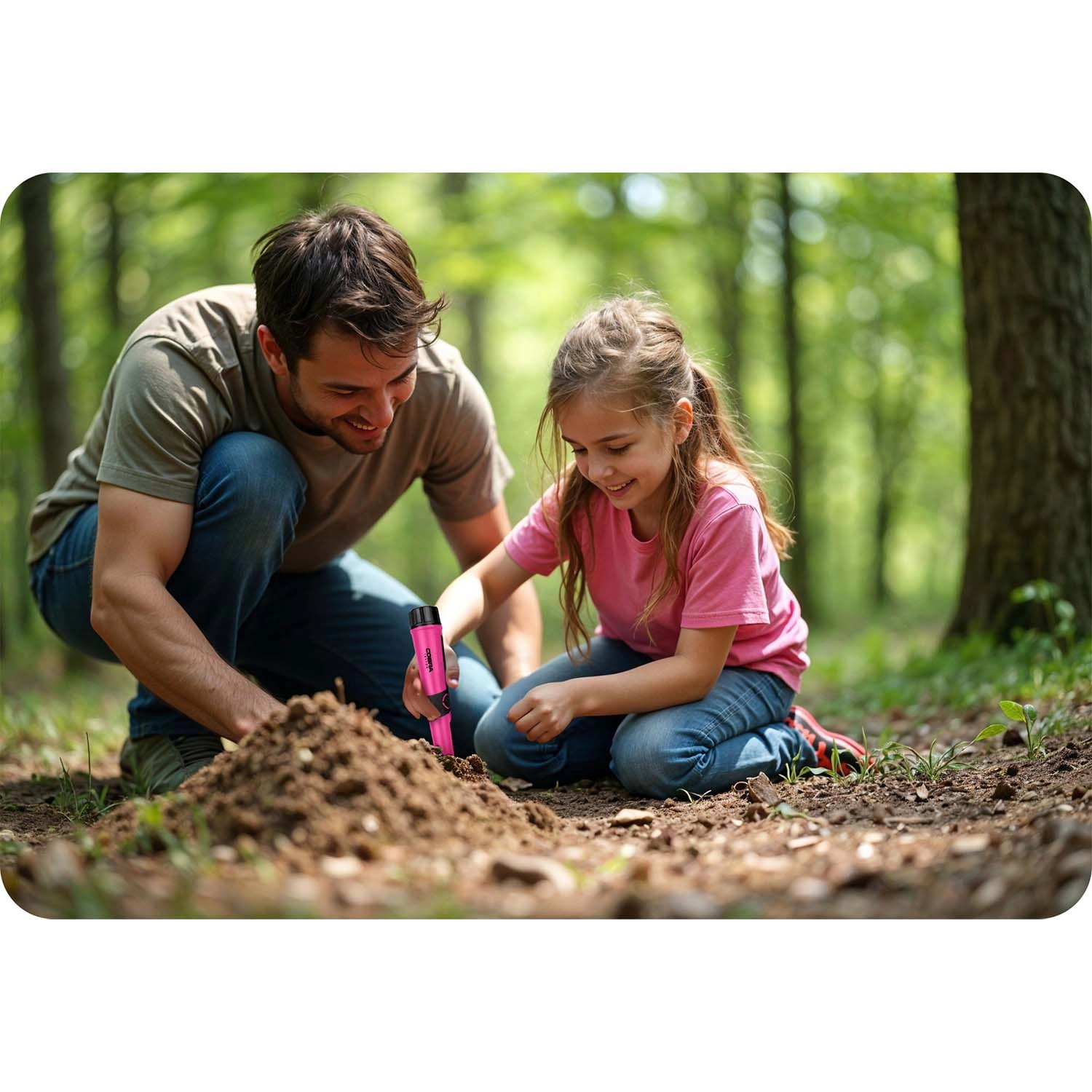 The COBRA Tector CT-1079 is a compact pinpointer that significantly speeds up locating coins, jewelry, and other metal items. Thanks to 360° detection and a precise tip, you can quickly narrow down the target location even in challenging terrain. A rugged design with IPX8 rating lets you work in rain, mud, and shallow water, while the integrated LED flashlight helps in low light and dark cavities.