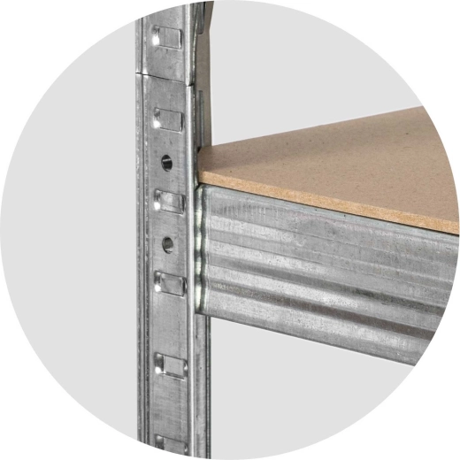 Compact yet exceptionally spacious, the Humberg rack makes efficient use of every meter of space. Five sturdy MDF shelves support up to 625 kg in total (with evenly distributed load), while the galvanized steel frame ensures long life and corrosion resistance. Rounded edges and plastic foot caps enhance safety and protect floors from scratches.