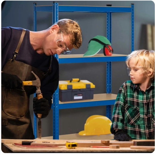 The screwless click-in design enables quick and easy assembly without tools. You can split the unit into two lower stands or turn it into a practical workbench—an ideal solution for workshops, garages, and warehouses.