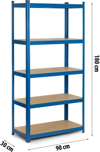 Metal shelving unit HUMBERG 180 × 90 × 30 cm, blue, 5 shelves, 875 kg