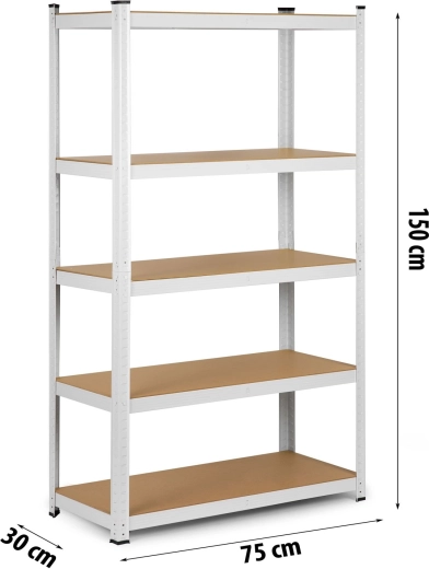 Metal Shelving Unit Humberg 150 × 75 × 30 cm, white, 5 shelves