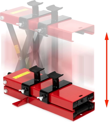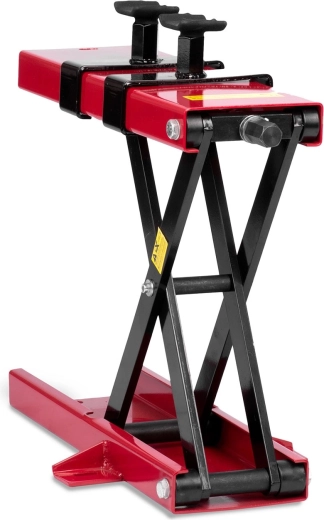 Looking for a sturdy and safe way to lift a motorcycle during service? This black-red MP1 scissor lift is made of high-quality steel and provides smooth height adjustment up to 42.5 cm. Thanks to the rubber supports and wide base, it offers excellent stability, while the holes in the base make solid floor anchoring easy.