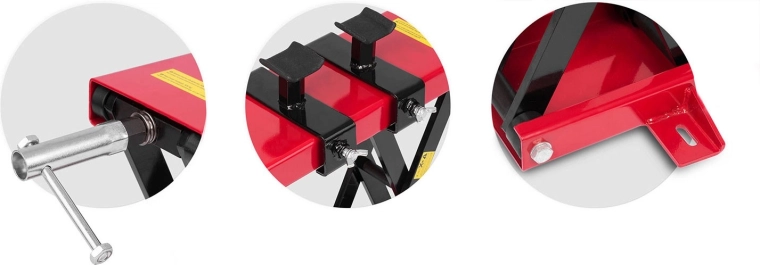 The intuitive mechanism is easy to operate, and the adjustable lock ensures the motorcycle is safely secured while you work. The lift is ideal for garages, workshops, and home maintenance—perfect for oil changes, chain cleaning, or minor repairs.
