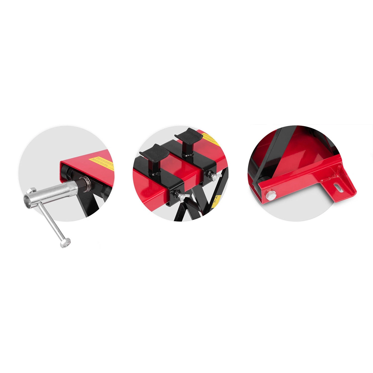 The robust steel construction can lift most motorcycles and ATVs. A stable base and rubber supports protect the frame and ensure a secure contact.