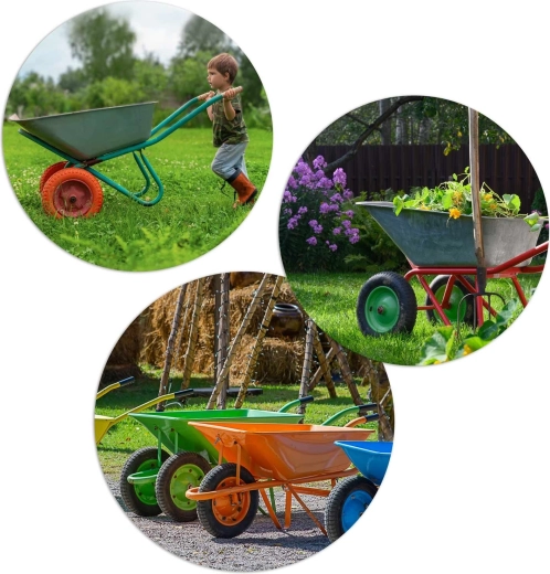 - Wheelbarrow, garden and workshop carts, industrial settings and workshops