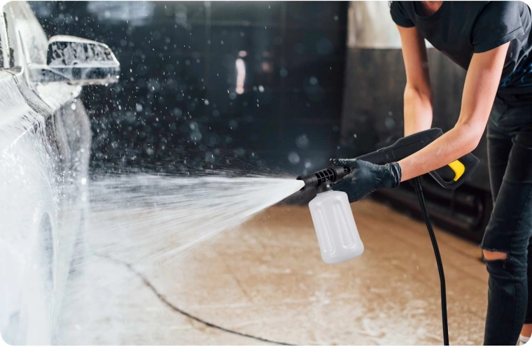 For safer and more efficient work, there’s StopAndSafe™ – automatic pressure relief and trigger lock save water and energy and protect the pump from overheating. The attachable 450 ml foam bottle with adjustable dosing makes washing cars and motorcycles easier. A water filter is also included to prevent debris from entering the pump and nozzles.
