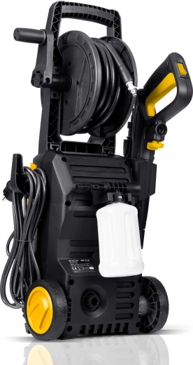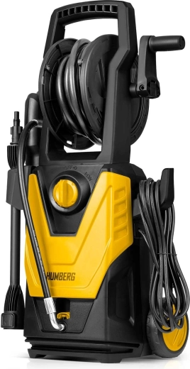 The Humberg HM-300 is a reliable pressure washer for home and garden. A robust build, induction motor, and aluminum pump ensure consistent performance and long service life. The integrated reel for the 6 m high-pressure hose and a power-cable holder speed up operation and storage. With TurboStream™ technology, you can remove even stubborn dirt from paving, fences, and facades.