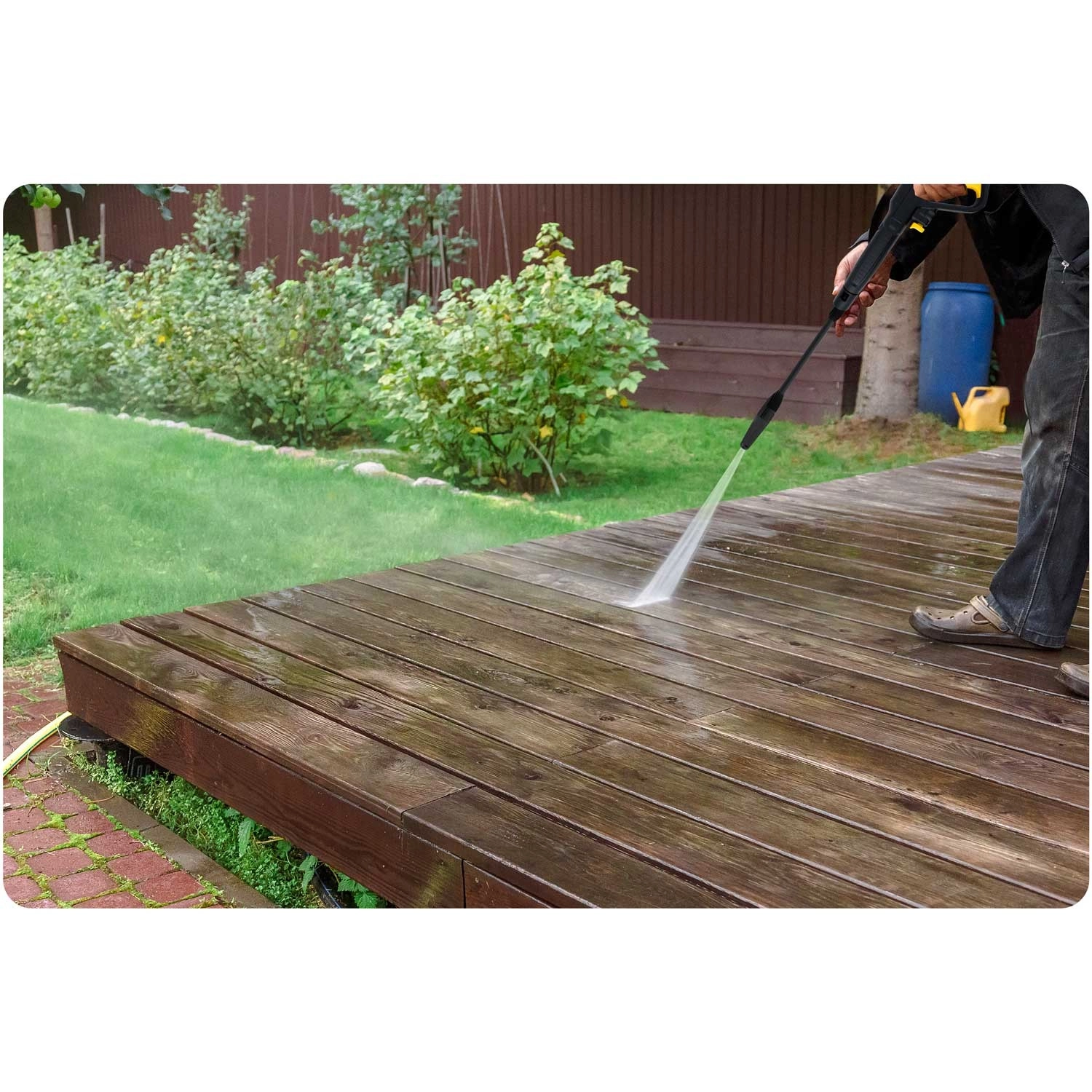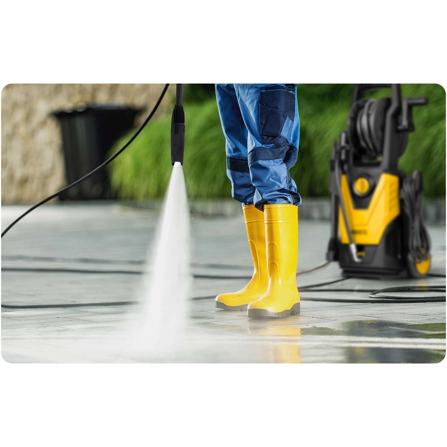 A concentrated high-pressure jet quickly breaks down grease, mud, and moss on paving. Ideal for heavy-duty cleaning of patios, walkways, and vehicle underbodies.