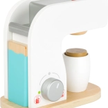 Enrich the play kitchen with a modern wooden coffee maker that elevates the level of children's service. This coffee maker allows children to simulate the coffee-making process, which supports their imagination and social interaction skills.