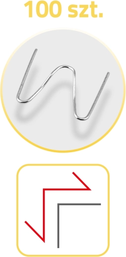 Practical set of 100 type B staples (wide wave) 6 mm for plastic repairs using a welder. Compatible with most plastic welders, made of high-quality anti-corrosion metal for long service life. Ideal for quick and strong repairs of bumpers, headlight covers, dashboards and appliance plastic parts – a fast, economical and reliable solution.