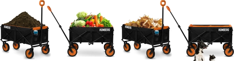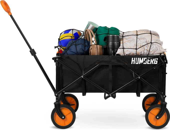 Enjoy easy transport of gear, groceries, or garden materials. The HUMBERG folding cart offers a generous 100 L capacity, load rating up to 90 kg, and a design made for quick folding in just a few seconds. Thanks to the robust steel frame and quick-drying, easy-to-clean fabric, it is ready for everyday use at home and in the field.