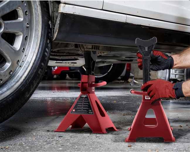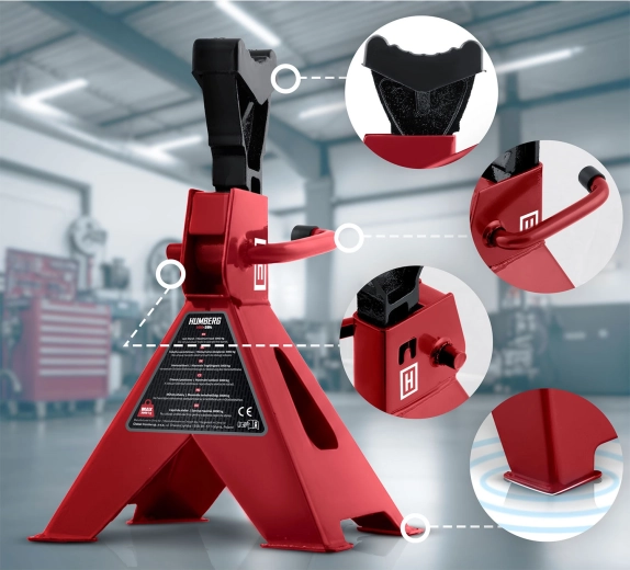 Reliable and durable car stands are ideal for a home garage or a professional workshop. Ratcheting height adjustment enables quick and safe positioning, while rubber pads minimize the risk of scratching or denting the body’s support points.