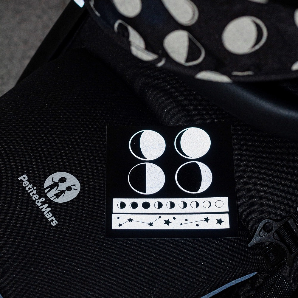 The Heritage Luna reflective stickers in an elegant lunar design turn any stroller into a safer and more attractive companion, whether in the city or outdoors. Thanks to the reflective material, they significantly increase safety and visibility at dusk and in the dark, with no extra maintenance required.