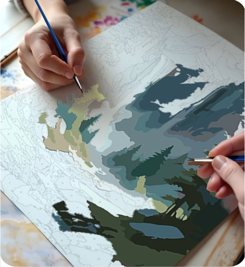 Paint by numbers is a social, calming activity. Share creativity, colors, and the joy of a gradually emerging artwork.