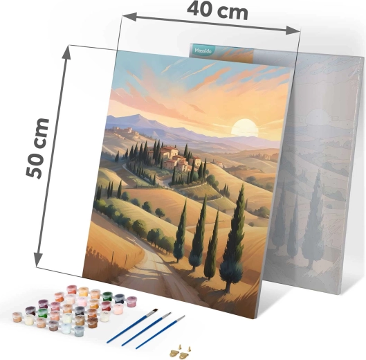 Discover the joy of creating with the high-quality 40 × 50 cm paint by numbers set from Massido. A sturdy stretched canvas on a wooden frame, a color underpainting for easier orientation, up to 30 opaque acrylic paints, 3 precision brushes, and a hanging hardware set – everything you need for a beautiful landscape painting, even if you’re just starting out.